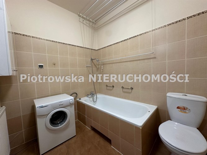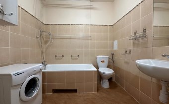 - łazienki z WC wyposażonej w wannę i małą pralkę;