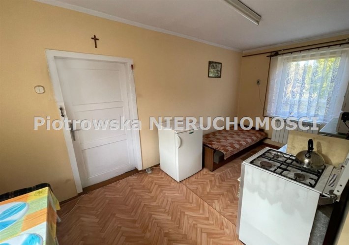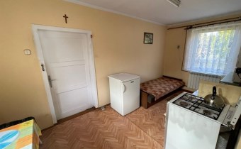 Dom parterowy jednoizbowy z osobną kuchnią i łazienką.